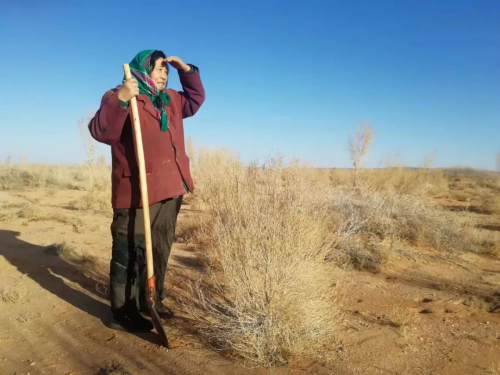刘奶奶说,牧场没了,成了沙漠,年轻的孩子们不愿在这里生活,都出去打工了。我舍不得离开这里,就在这里种树,多种一棵梭梭就少一分沙漠,等沙漠没了,外出的孩子们也就愿意回来了吧。