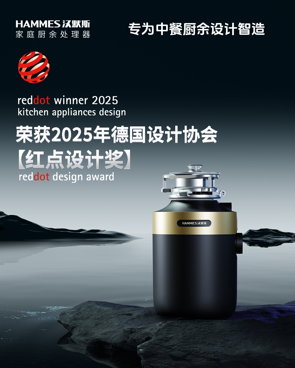 2025年4月,被誉为“设计界奥斯卡”的红点奖70年来首次花落厨余处理器领域,厦门金当环保科技有限公司旗下的汉默斯VDipo3 Pro凭借独特设计和硬核技术征服国际舞台,斩获这一国际权威殊荣,开创行业先例!