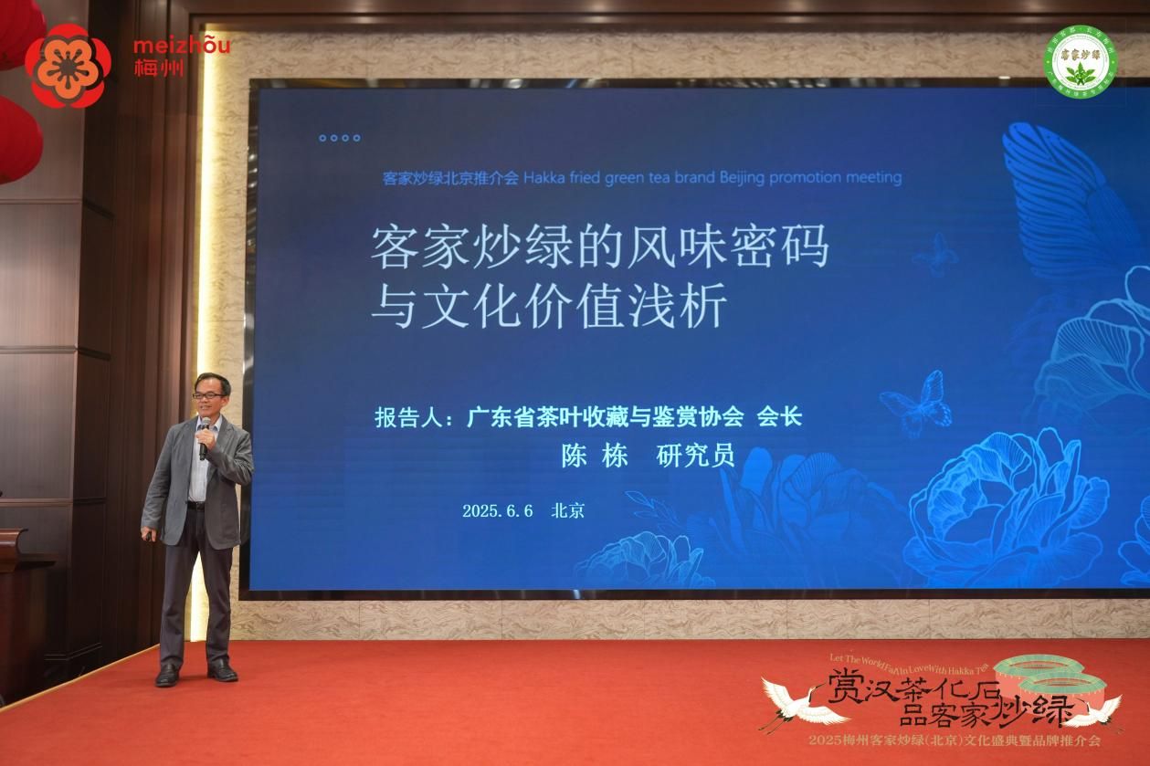 6月6日,2025梅州客家炒绿品牌推介会在北京隆重启幕。本次活动以“赏汉茶化石 品客家炒绿”为主题,通过文化溯源、产业对话、标准发布、品牌推介等多元形式,向全国展现“客家炒绿”这一汉茶活化石的独特魅力,奏响梅州农业高质量发展强音。广东省农业农村厅、梅州市人民政府及各界嘉宾百余人齐聚一堂,共同见证这一跨越古今的品牌盛会。