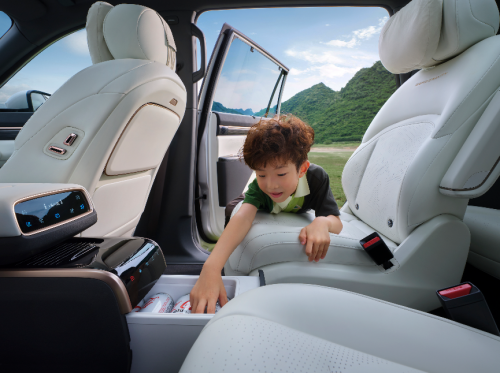 舒适性配置上,eπ008堪称幼儿园与“家庭VIP舱”的结合体。今年推出的如奕版车型,直接将“冰箱彩电大沙发”三大件纳入标配:5℃制冷/50℃制热的智能冰箱,既能冰镇夏日饮品,也能保温宝宝辅食;15.6英寸后排娱乐屏支持手机投屏,配合20扬WANOS全景声,瞬间将后排变成移动影院。5座版标配的魔毯座椅具备变换功能,6座版的零重力座椅更是长途出行的“神器”,再加上全景天幕、遮阳帘等配置,每个座位都能享受“头等舱待遇”。