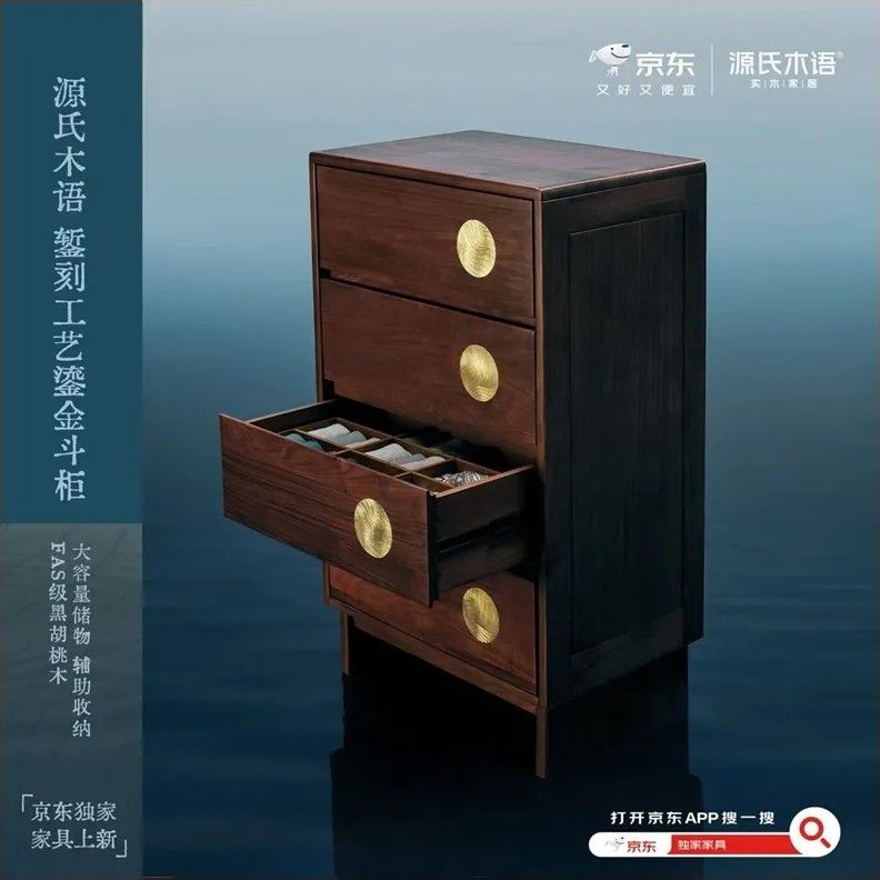 2024年12月,经过调研,京东家具采销团队将目光瞄向了濒危技艺——錾刻,并选择了源氏木语、朴愫木作、溪木工坊三家品牌进行联名产品研发,助力非遗工艺实现当代转生。