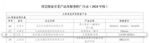 近日,工业和信息化部、民政部、国家卫生健康委员会联合发布《智慧健康养老产品及服务推广目录(2024年版)》,萤石网络旗下"无感睡眠伴侣"及"居家养老远程智慧看护场景"分别入选养老监护类智能产品及场景化解决方案。这一认可标志着萤石网络在智慧养老领域的创新成果正式成为国家推广的标杆案例,为老龄化社会提供更安全、便捷的科技守护。