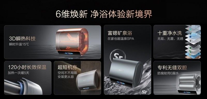 为解决用户痛点,海信重磅推出3D速热电热水器DS11Ultra,其创新搭载3D聚能环、新一代钛金加热管及3300W变频双管,让用户告别漫长等待,澎湃热水即开即享;25倍增容大水量设计,热水供应源源不断,可满足全家人洗浴需求。创新配备富锶净水洗系统,可深层祛除水垢与有害物质,带来极净水质体验。还有专利无缝双胆、智能操作、十重安全防护等,致力于将日常沐浴体验从“将就”提升至“讲究”,让居家沐浴也能享受到温泉级体验。
