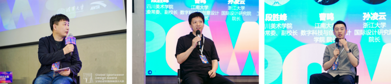 圆桌讨论环节由四川美术学院党委常委、副校长段胜峰主持,江南大学数字科技与创意设计学院院长曹鸣、浙江大学国际设计研究院院长孙凌云、中国美术学院工业设计学院院长王昀、清华大学化学工程系教授郭宝华及斐乐品牌创意总监Robbie Fuller分享洞见,为参赛者提供了极具价值的学术指导与创新思路,也为整个运动装备行业的发展提供了新思路。