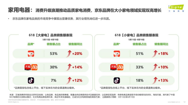 在消费升级浪潮的持续推动下,中国家电市场正经历从规模扩张向质量提升的战略转型。随着居民可支配收入持续增长和消费理念不断升级,今年618大促期间,各大电商家用电器品类展现出强劲的增长势头。