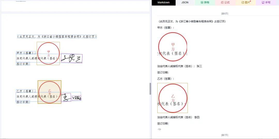 金融文档中常见手写签名、批注及各类印章覆盖,对传统OCR识别构成巨大挑战。TextIn文档解析具备强大的图像处理与文字识别能力,能有效分离背景印章干扰,清晰辨识覆盖文字,并对潦草、连笔的手写体保持较高的识别准确率。这确保了关键信息(如签字页、手写备注)的完整获取,满足监管对文件“清晰、准确”的严苛要求,规避因关键信息遗漏或误读引发的合规风险。