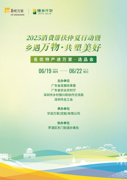 乡遇万物,共塑美好。为响应广东省2025年“消费帮扶仲夏行动”部署,搭建优质农产品产销对接桥梁,华润万家将于 6月19日至22日在深圳罗湖东门老街广场(导航“大铜钟”)举办首届2025消费帮扶仲夏行动暨 “乡遇万物·共塑美好”名优特产进万家·选品会。百家农企严选商品现场“竞逐”,更有寻味舌尖上的“乡遇风味”市集活动,邀请广大市民一同品鉴地道风物。