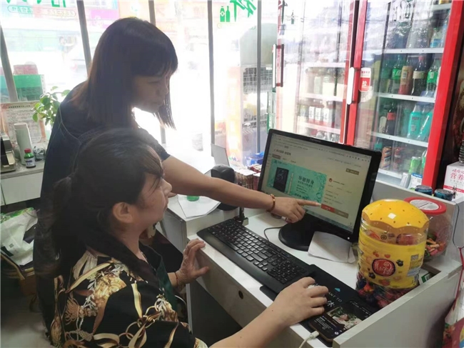 图为刘河部所客户经理协助卷烟零售户使用系统