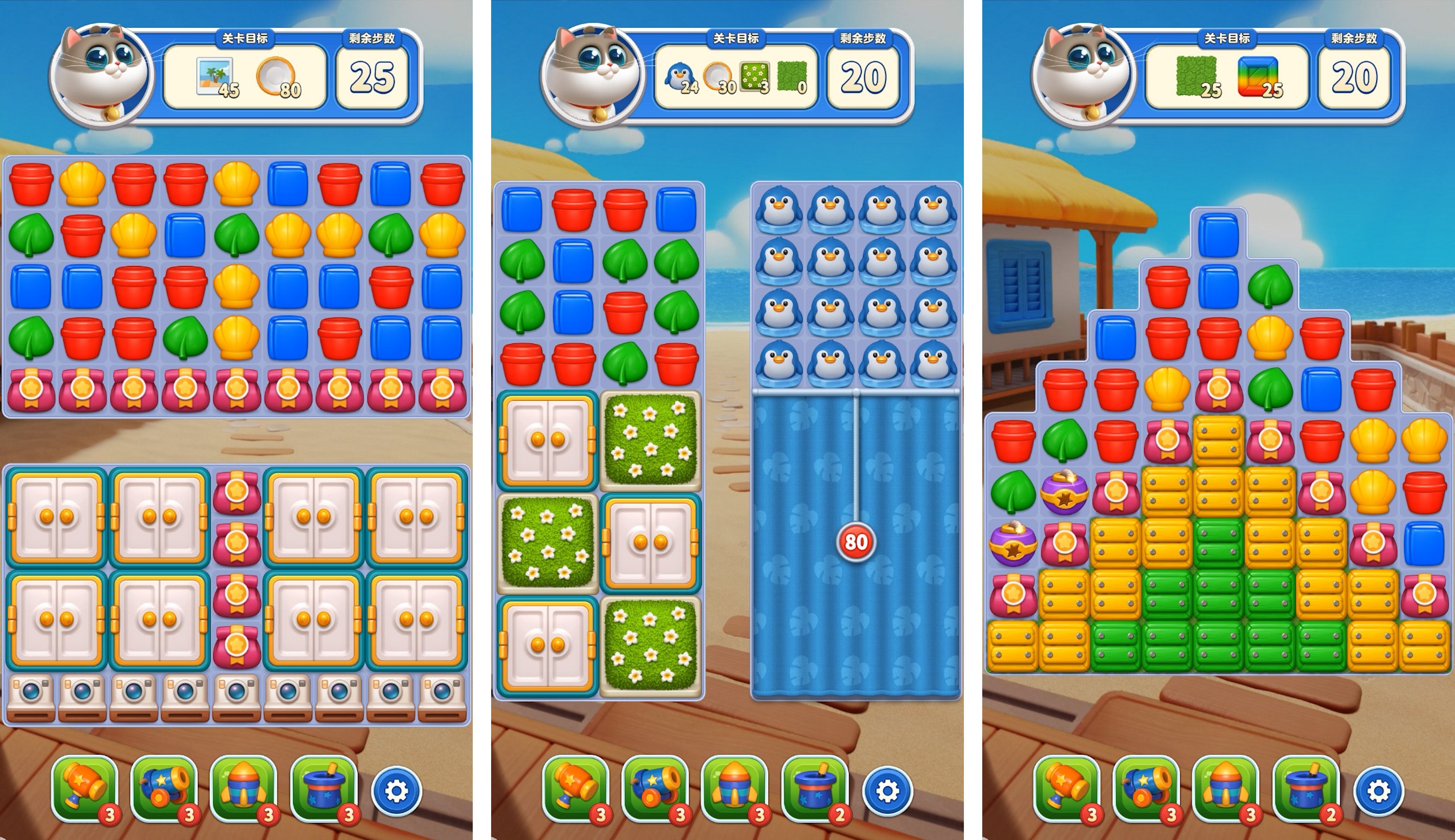 同时,《假日乐消消》也是一款全新的融合了“消除+建造”玩法的创新型消除游戏,玩家不仅能在游戏中享受爽快解压的消除乐趣,还能在可爱猫咪的陪同下,亲手打造度假海岛,和迷人的海岸风光作伴,尽情享受海岛度假的悠闲时光。