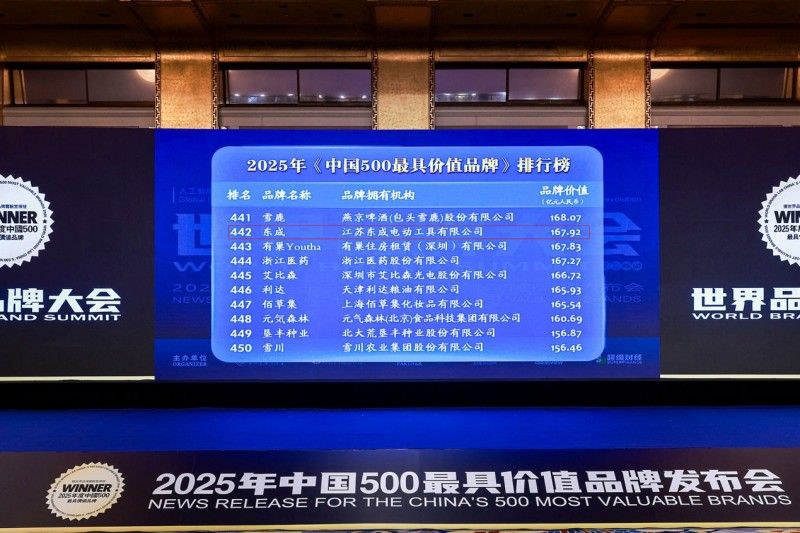近日,备受瞩目的第22届“世界品牌大会暨中国500最具价值品牌发布会”在北京隆重举行。江苏东成电动工具有限公司(以下简称“东成”)凭借卓越的市场表现、强大的品牌影响力与深厚的创新实力,荣膺“2025年中国500最具价值品牌”,品牌价值评估高达167.92亿元人民币,位列榜单第442位,是本年度该榜单中唯一上榜的中国电动工具品牌。