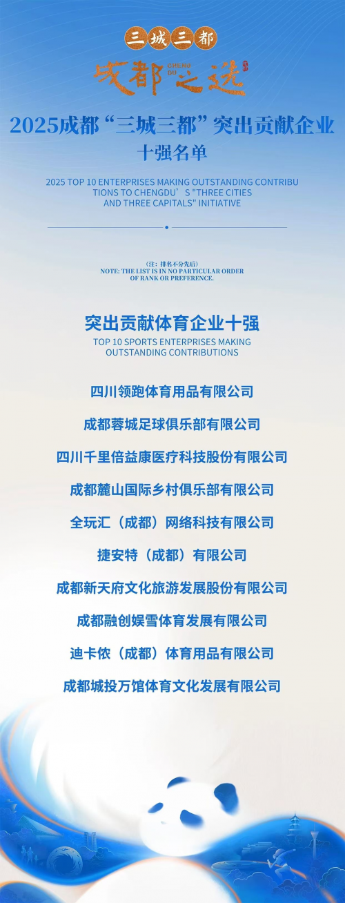 龙头企业是产业发展的重要引擎,发挥着至关重要的驱动作用。2025成都“三城三都”突出贡献企业十强名单包括突出贡献体育企业十强等。其中,倍益康榜上有名。