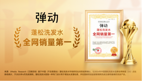 弹动品牌蓬松洗发水获得全网销量第一市场地位认证