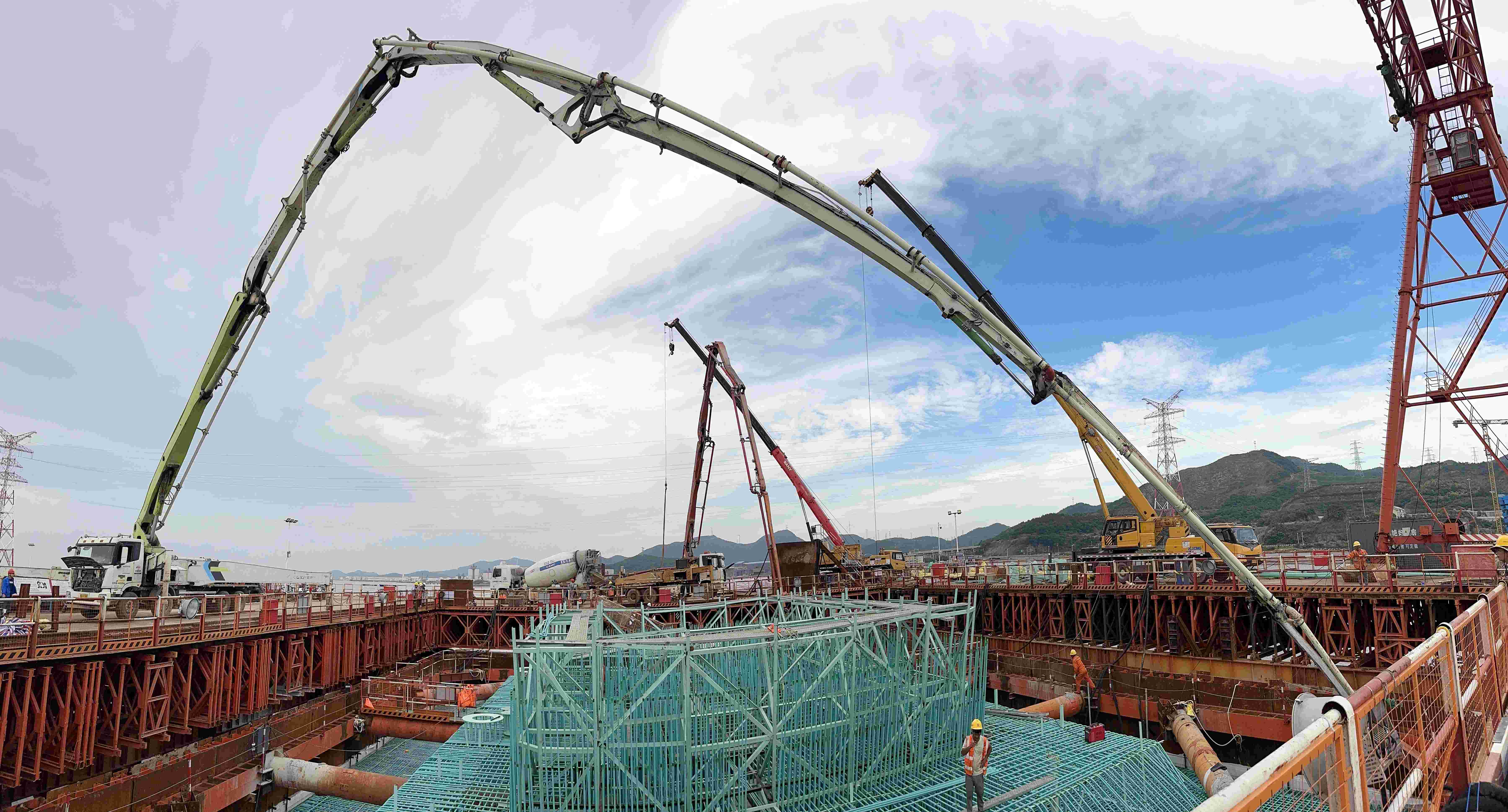 2.超长保塑,保障连续施工:保障70小时连续浇筑的施工顺畅性。中建新材此次供应的产品具备优异的缓释保坍性能,即使在高温及等待条件下,也能确保混凝土长时间保持流动性与和易性,满足复杂海况下连续泵送与浇筑需求,避免施工冷缝。
