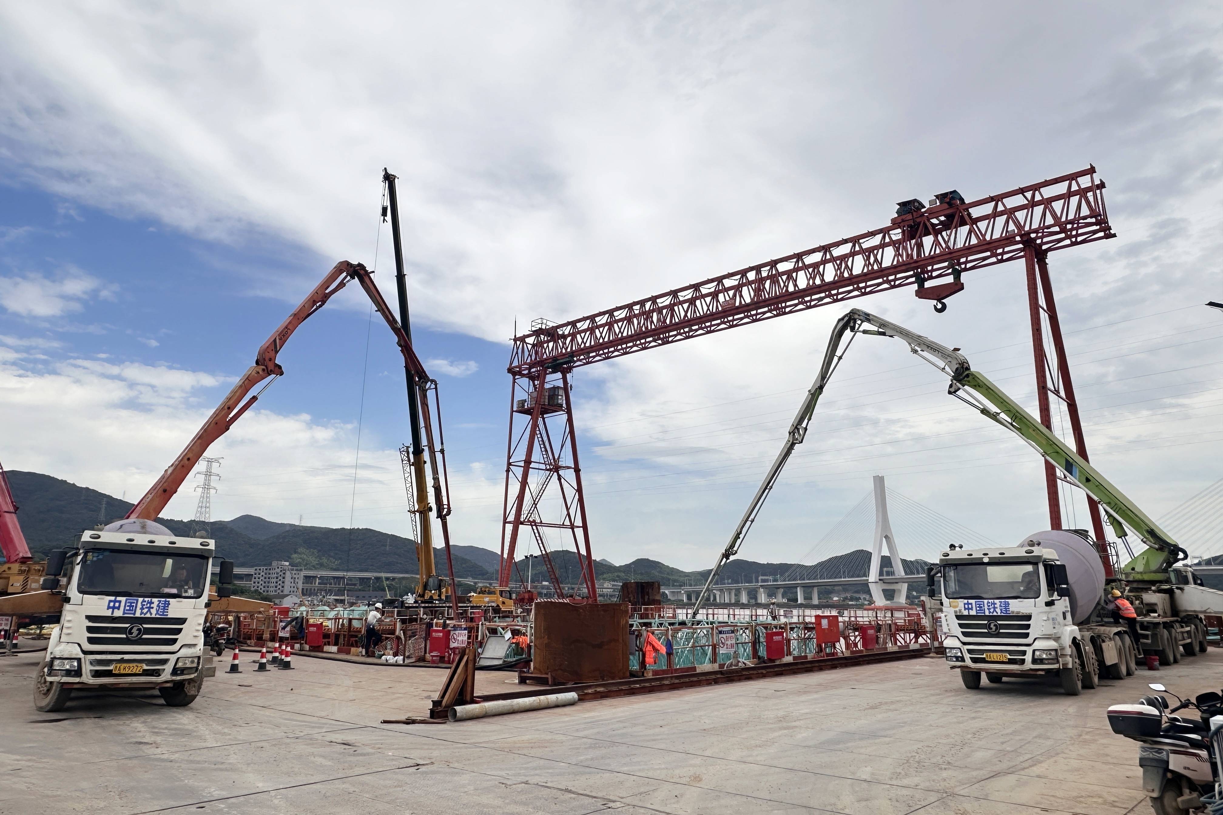 近日,经过70小时的连续浇筑作业,由中建新材提供外加剂产品与专业技术支持的甬舟铁路富翅门公铁两用大桥20号主墩承台,顺利完成4300立方米大体积混凝土浇筑。随着承台成功露出水面,标志着甬舟铁路全线跨海大桥主塔墩全面进入水上施工阶段。