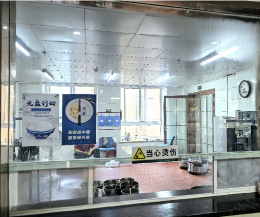图为区局餐具回收处张贴“光盘行动”标语海报