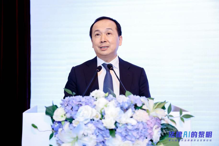 同济大学法学院院长、上海市人工智能社会治理协同创新中心主任蒋惠岭,上海市法学会副会长、上海市律师协会会长、上海法律科技协会会长邵万权,上海市企业法律顾问协会执行副会长赵利莅临论坛并致辞。