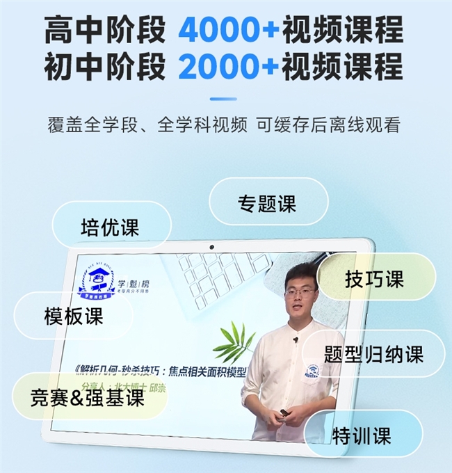 学魁平板,作为海南学魁榜教育的明星产品,其核心价值在于其丰富的学习资源和个性化的学习体验。该平板内置了超过7000节精心录制的学习视频,内容全面覆盖初高中全学科知识章节。这些视频按照学生的实际学习需求,细分为专题课、技巧课、模板课、冲刺课等多种类型,确保每位学生都能找到适合自己的学习路径。