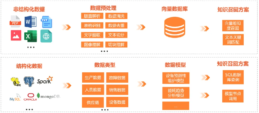 创新奇智AI Agent开发平台不仅提供通用的知识库文档解析模板,还支持针对特定类型的文档(如PPT、合同、论文、图书、表格、图片等)进行高级定制。除了能有效处理非结构化数据之外,也支持集成数据库处理结构化数据,用户可以使用SQL查询直接从数据库中调用数据至工作流中。