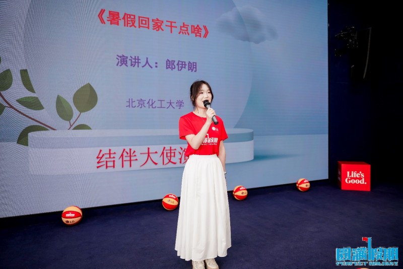 活动现场邀请了3名往期的结伴大使来分享他们的公益感悟,从而激励新一届的志愿者们奔赴家乡投身公益。来自中央民族大学的登真更登以“半个篮球场”为题,讲述了篮球如何成为连接他与家乡孩子们的桥梁,他用自己的行动诠释了青春的责任与担当。北京化工大学的郎伊朗,则以“暑假回家干点儿啥”为题,分享了自己通过活动为家乡的儿童带来改变的故事,激励更多青年加入公益的行列。华北电力大学的梁倩菲表达了在实践中书写青春答卷的决心,展现了当代大学生积极向上的精神风貌。