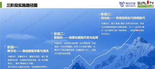 在落地路径上,赵志现身说法了格创东智打磨AI+质量管理解决方案的数字化、智能化、自治化三阶段实施路径。第一阶段即通过质量软件化和数据清洗标准,解决数据散落难题;第二阶段,格创东智选择高价值场景(如外观检测、设备预测)开发专用模型,采用“小步快跑”POC策略逐步扩展;最后,格创东智建立了“数据+模型+决策”闭环机制,实现质量管控的自治化。