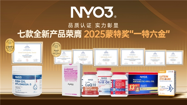 当全球磷虾油市场因消费者健康需求激增而快速扩张,高品质供给的稀缺与行业乱象却成为隐忧。 在此背景下,挪威高端健康品牌NYO3以其100%本土化“研产销一体”的标杆级链条,交出了一份标杆级的答卷——2025年上半年,其七款产品横扫蒙特奖,勇夺特级金奖及六项金奖,成就罕见大满贯。