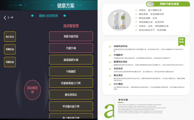 新北辰个性化营养素定制系统,基于每个人的健康数据深度分析,针对慢病的根源进行精准调理。与传统“千人一方”的大宗保健品不同,个性化定制营养素作为营养食品,根据个体的健康状况、生活习惯和生理需求量身打造。通过AI数据精准分析,结合全球500多种优质原料和1000多项专利技术,针对疾病根源经行干预,确保每一位患者都能获得最佳的个性化营养支持。