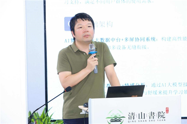 他首先指出,教育数字化是开辟教育发展新赛道的重要突破口,而“爱高手”平台正是响应国家人工智能与教育数字化战略的实践成果。该平台以“AI 赋能、数智驱动”为顶层设计,构建了覆盖学习机 Pad、App、小程序及 SaaS 平台的多终端体系,依托 AI 算力集群、大数据中台及智能推荐算法等技术支撑,旨在构建“测评 - 学习 - 就业”全链路生态,为教育数字化转型与高质量就业提供全新解决方案,实现全场景学习与就业服务的无缝衔接。