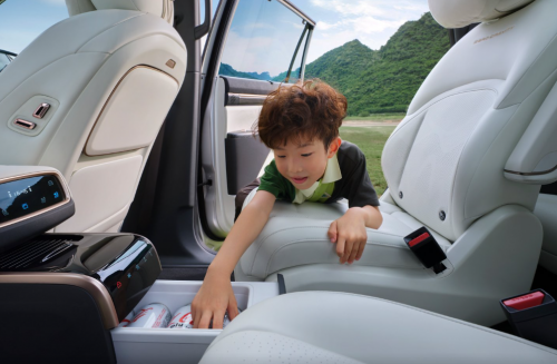 15.6英寸后排娱乐屏支持无线投屏,孩子可沉浸观看动画,旅途不再枯燥。车机系统响应流畅,操作逻辑清晰, 无论是导航设置还是娱乐功能切换都丝滑顺畅。移动冰箱支持5度制冷或50度制热,夏日为宝贝冰镇水果酸奶,冬日为长辈温上养生热饮,一机满足全家需求。令人惊喜的是,即使停车熄火长达12小时,冰箱依然持续工作。更贴心的是,其前后排空调系统制冷制热效果强劲且迅速,无论炎夏寒冬,都能在短时间内为全车乘员营造各自舒适的温度环境。