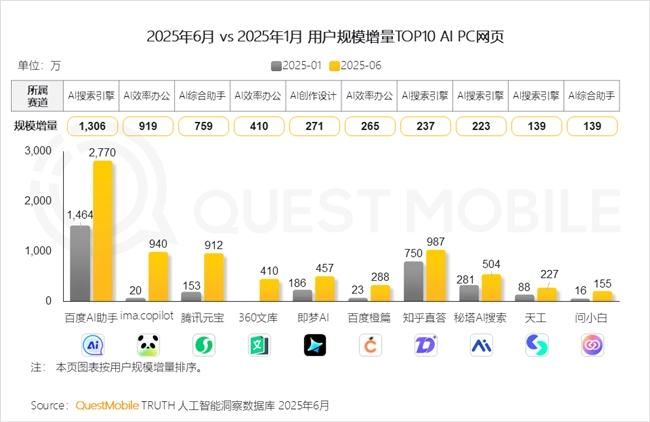 2.6 回顾2025上半年各赛道发展情况,无论哪种应用类型,AI搜索引擎赛道规模增量均最大,无疑为上半年的“黑马赛道”