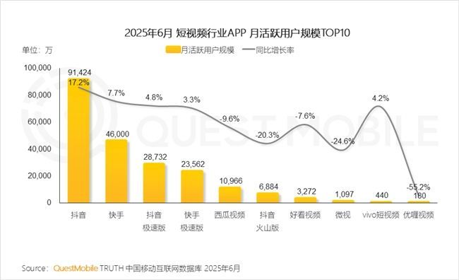 QuestMobile数据显示,2025年6月,全网用户月人均单日使用时长及次数分别为7.97小时和117.9次,较去年同期分别提升7.8%、2.6%,用户粘性加深。