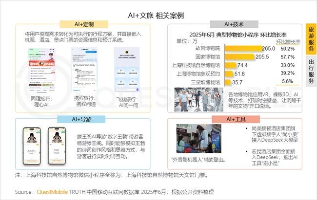 Ⅳ. “科技+文旅”解锁旅游新花样,旅游行业智能化加速;在线旅游OTA平台陆续上线AI助手,帮助游客制定出行规划,提升使用体验;同时,AI、AR等科技赋能激活文旅消费新场景,助力旅游景区、博物馆、酒店延伸消费业态