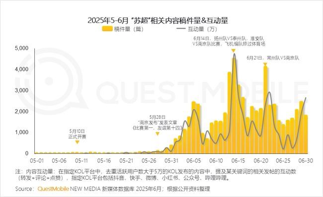 QuestMobile数据显示,2025年6月“苏超”全网互动量高达1.04亿,环比增长4225.4%。