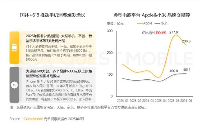 Ⅶ. 国补加码叠加618大促驱动旗舰机型价格下探,品牌间竞争愈加白热化,其中Apple 5月交易额环比激增近200%