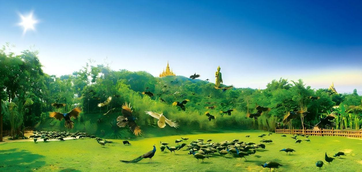 想邂逅自然奇观?定时上演的孔雀放飞不容错过。上百只孔雀从青山间振翅齐飞,尾羽流光溢彩,鸣声清脆,宛如绚丽彩云掠过天际,上演现实版 “百鸟朝凤”。游客既能近距离与孔雀互动,亦可在傣乡风情里,体悟人与自然的和谐之美。