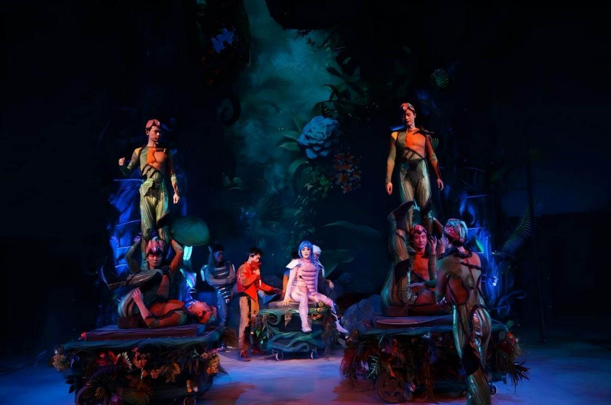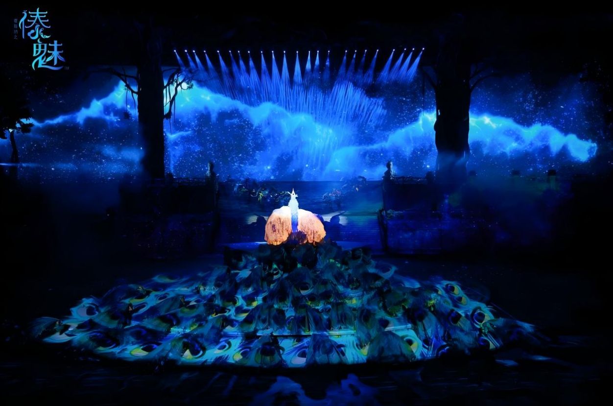 银湖剧场内,民族史诗实景演艺《夜版纳之傣魅》将夜晚氛围推向高潮。该剧以《孔雀公主》为蓝本,依托 14000 平方米巨型舞台、30 米高瀑布水景及裸眼 3D 技术,把傣族的历史、信仰与浪漫爱情故事娓娓道来,让观众于光影流转中,读懂千年民族传奇。