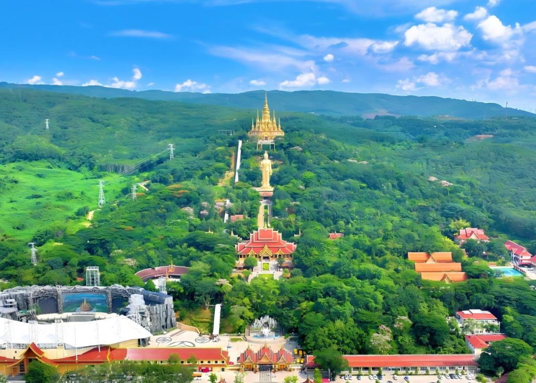 暑期已至,西双版纳勐泐文化旅游区正成为亲子游、避暑游的人气之选。这座在古代傣王朝皇家寺院原址上重建的景区,依山势而建,落差高达 122.8 米,从山门到金塔的动线宛如一条串联历史的脉络。