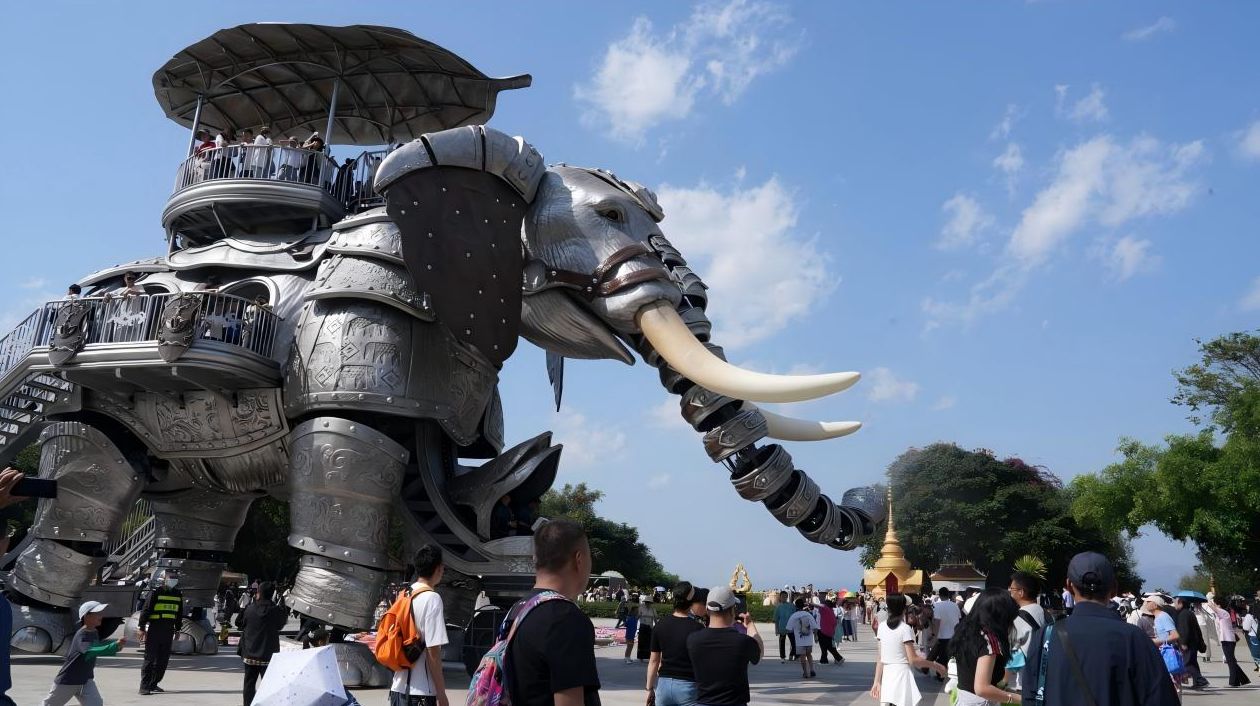 景区精彩持续升级。以亚洲象为主题的魔幻演出《象之心》,用艺术手法编织人与象的情感纽带,传递生态共生理念,带来震撼视听体验。而 15 米高、25 米长、重达 60 吨的机甲大象 “巴力”,化身跨次元安泰使者,扬鼻喷洒祝福水雾 —— 它既是傣族文化中吉祥力量的象征,也彰显着对亚洲象的守护与对生态和谐的追求。