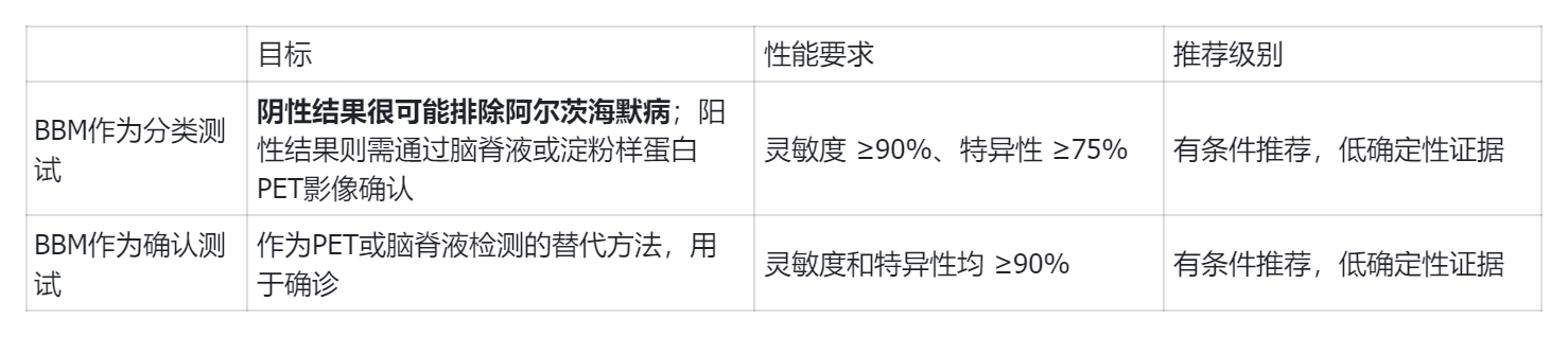 表1:AAIC 2025 AD血液生物标志物指南:关键性能要求与应用场景