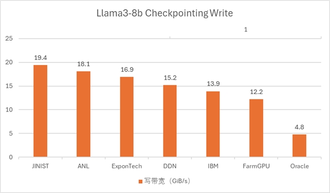2、MLPerf™ Storage v2.0测试新推出的检查点(Checkpoint)工作负载专门针对分布式扩展系统中大型语言模型(LLM)的训练场景,重点优化训练过程的备份与恢复速度。ExponTech WADP方案在Llama3-8B模型的实际测试数据位于全球领先水平。