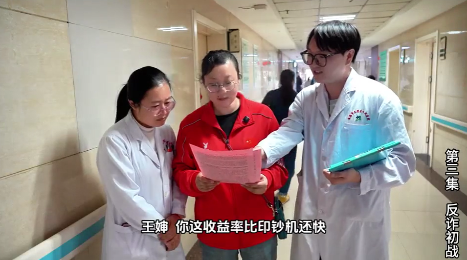 作品《重生之我在医界当反诈先锋》借助当下最流行的短剧“重生”剧情,揭露了非法集资的真面目,寓教于乐,以轻松诙谐的形式承载了严肃的警示教育内涵。
