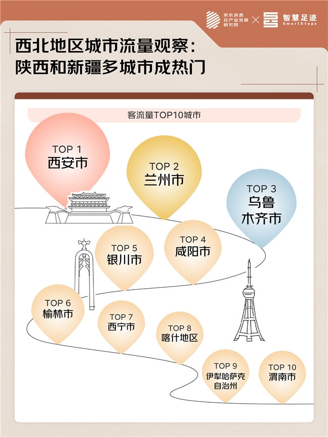近日,京东消费及产业发展研究院联合联通数智智慧足迹对暑期西北地区的线上消费、线下景点的客流量进行观察,梳理了《京东2025消费观察之大西北的“暑期流量密码”》: