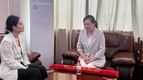 (图为青和居社区副书记张美丽与青山烟草分管领导座谈)