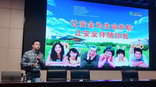 图为:珞南市场部经理为零售户讲解安全知识