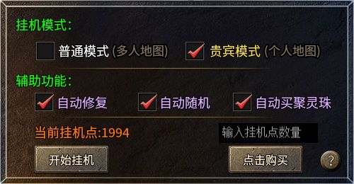 当然,升级的捷径不光一种,在盟重主城可以找到一个挂机练级NPC,可以选择“普通但人比较多”的普通模式或者“扣挂机点数但尊贵独享”的贵宾模式,也能利用每日任务获取的挂机点数和聚灵珠去享受美美升级的爽快。