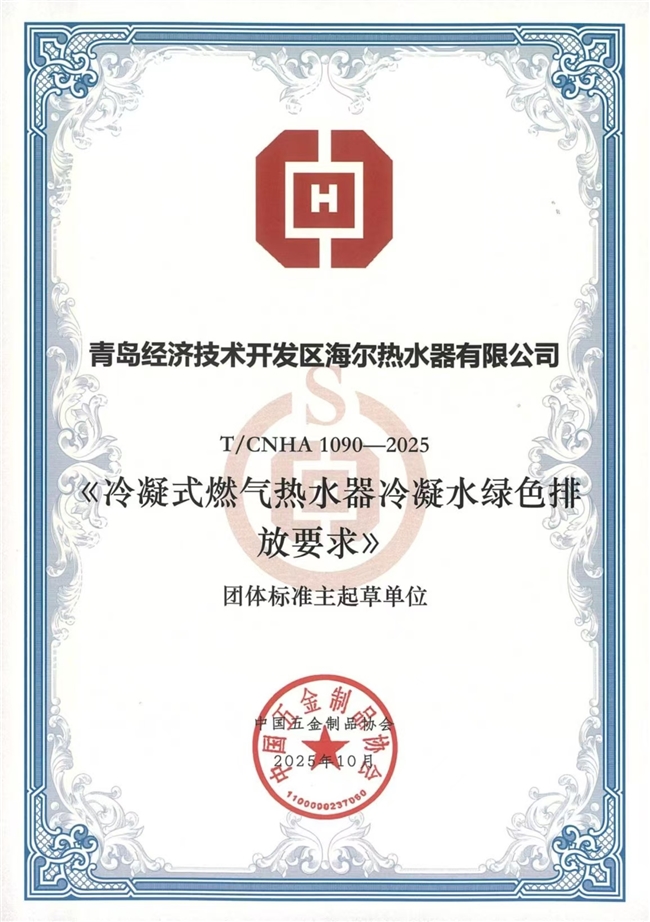 10月10日,海尔热水器联合中国五金制品协会,牵头制定行业首个《冷凝式燃气热水器冷凝水绿色排放要求》团体标准(以下简称“团标”)。团标首次明确了燃气热水器的冷凝水排放环保标准,并对热效率、热水产率、烟气成分等关键指标的测试方法作出统一规范。这不仅确立了产品合规门槛,填补了行业长期存在的标准空白,也将为产品创新、检测认证规范及市场监管提供技术依据,推动产业升级与技术迭代。