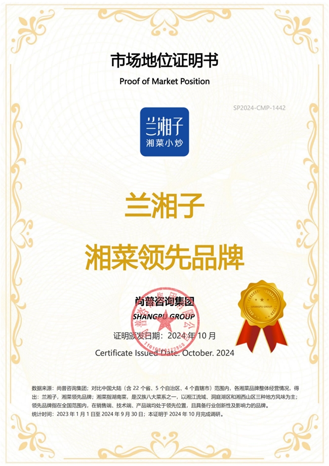 (兰湘子被尚普咨询认定为“湘菜领先品牌”)