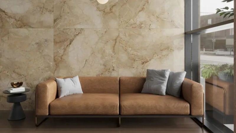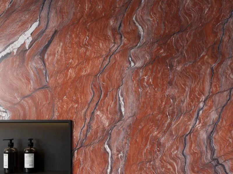 ▲冠珠华珍岩板-落霞红背景墙应用品鉴