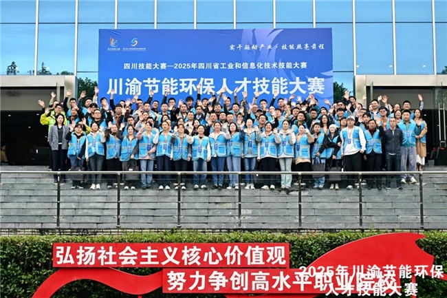 10月21日,2025年川渝节能环保人才技能大赛决赛在都江堰举行。大赛由四川省经济和信息化厅、重庆市经济和信息化委员会、四川省节能监管事务中心、重庆市节能技术服务中心联合主办,以“以赛促学强技能,以学促用励精兵”为导向,旨在培育节能环保人才、扶持绿色低碳产业、完善绿色制造体系。