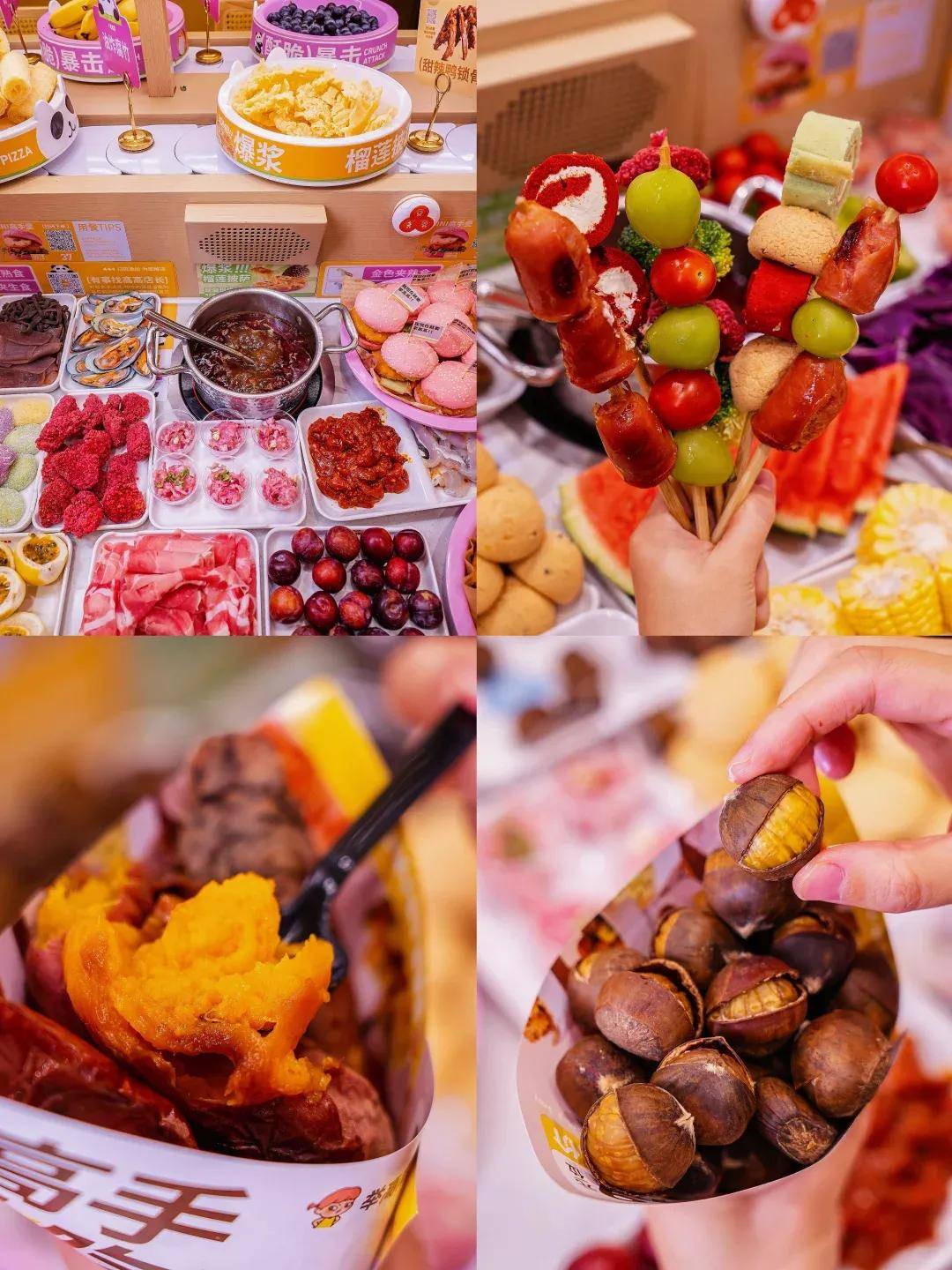 产品上更是更新迅速,不仅联合绝味推出了甜辣鸭脖、甜辣鸭锁骨、甜辣鸭翅尖,还在门店推出了高手炒板栗、高山烤红薯等应季产品,西安首店甚至在试水烘焙大单品现烤戚风蛋糕,应有尽有。
