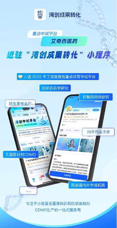 2025年10月28日,国家工信部重点培育中试平台单位——广州艾奇西医药科技有限公司,与大湾区科技创新服务中心举行签约仪式,正式进驻“湾创成果转化”小程序并开展深度合作。